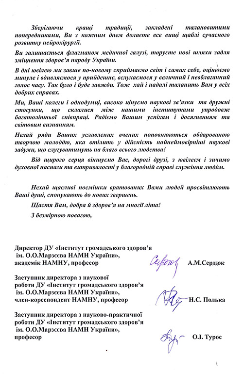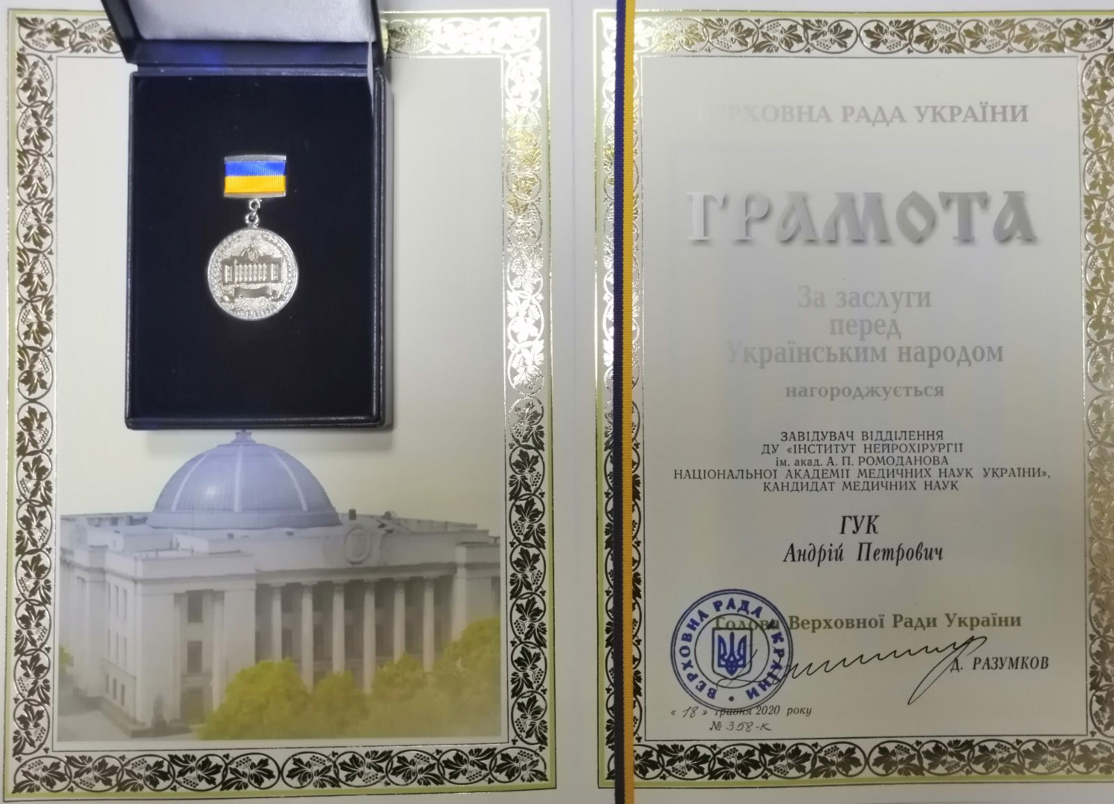 Відповідно до постанови Верховної Ради України від 05 липня 2001 року №2541-ІІІ «Про Почесну грамоту та Грамоту Верховної Ради України» за вагомий особистий внесок у розвиток системи охорони здоров’я, впровадження нових методів діагностики і лікування, надання кваліфікованої медичної допомоги, сумлінну працю та високий професіоналізм нагороджується кандидат медичних наук ТАТАРЧУК Михайло Михайлович, лікар-нейрохірург відділення відновлювальної нейрохірургії з рентгеноопераційною Державної установи «Інститут нейрохірургії ім. акад. А.П. Ромоданова НАМН України».