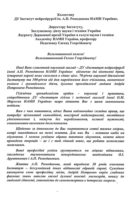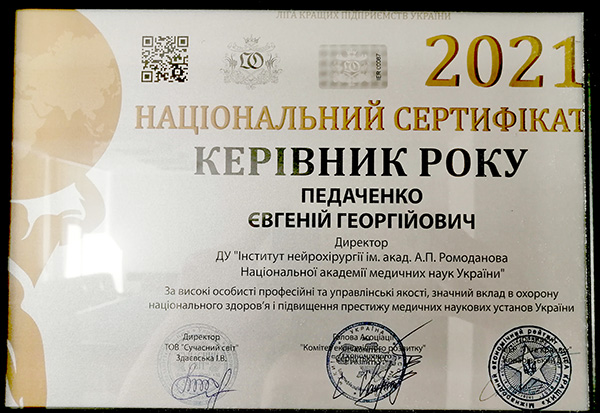 Вітаємо директора ДУ “Інститут нейрохірургії ім. акад. А.П. Ромоданова НАМН України”, академіка НАМН України, доктора медичних наук, професора, заслуженого діяча науки та техніки України Педаченка Євгенія Георгійовича з почесною нагородою ВГО “Спілки громадських організацій “Народна рада”- Золотою зіркою Героя Українського народу!